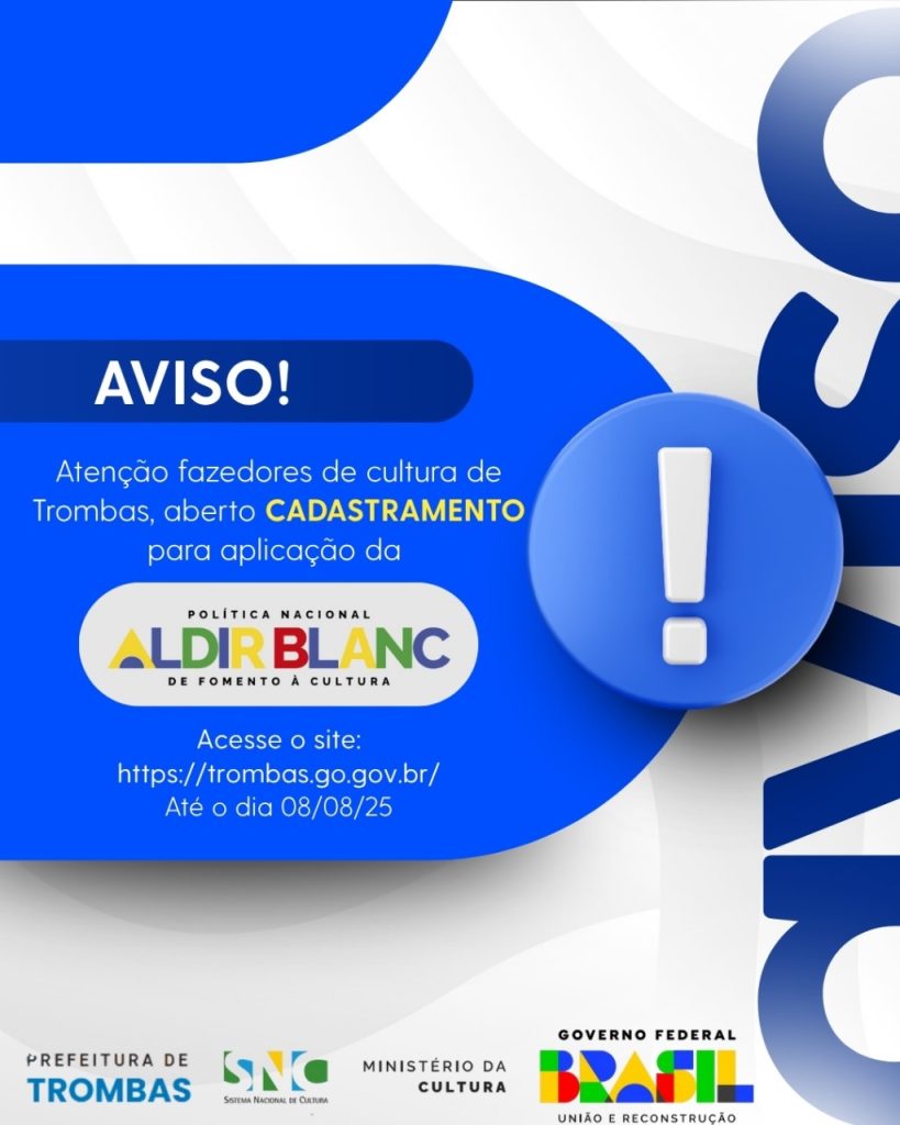 A PREFEITURA MUNICIPAL DE TROMBAS, ABRE CADASTRAMENTO PARA AGENTES CULTURAIS E ESPAÇOS DE CULTURA REFERENTE A APLICAÇÃO DA POLÍTICA NACIONAL ALDIR BLANC DE FOMENTO À CULTURA.
